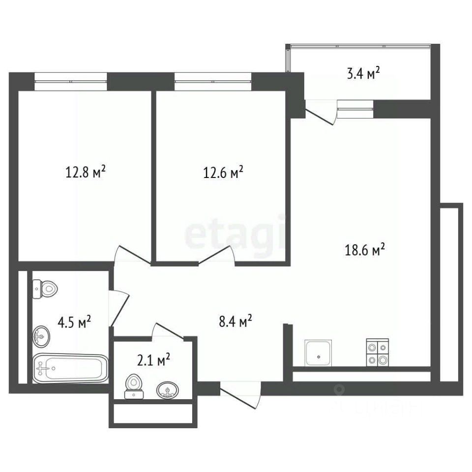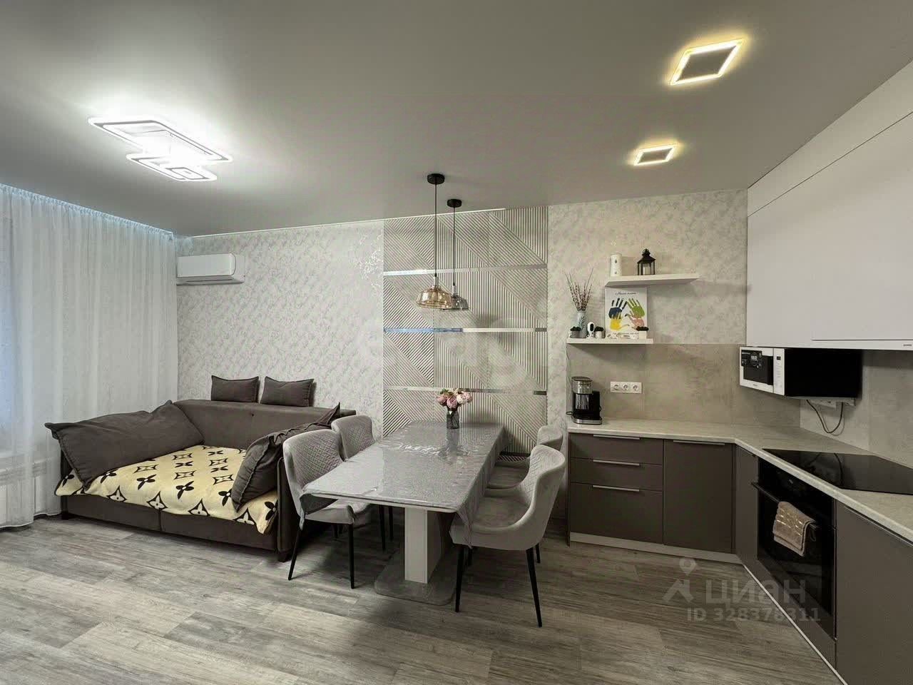 Планировка включает изолированные комнаты для максимального комфорта и приватности, а также просторную гостиную с выходом на застекленную лоджию. Кухня полностью укомплектована встроенной техникой, включая холодильник и посудомоечную машину. Санузел совмещенный, выполнен в светлой плитке с качественной сантехникой.