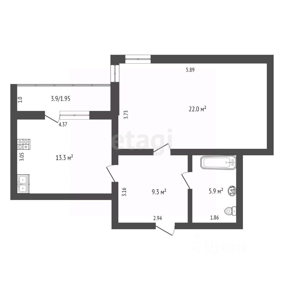 22 м²