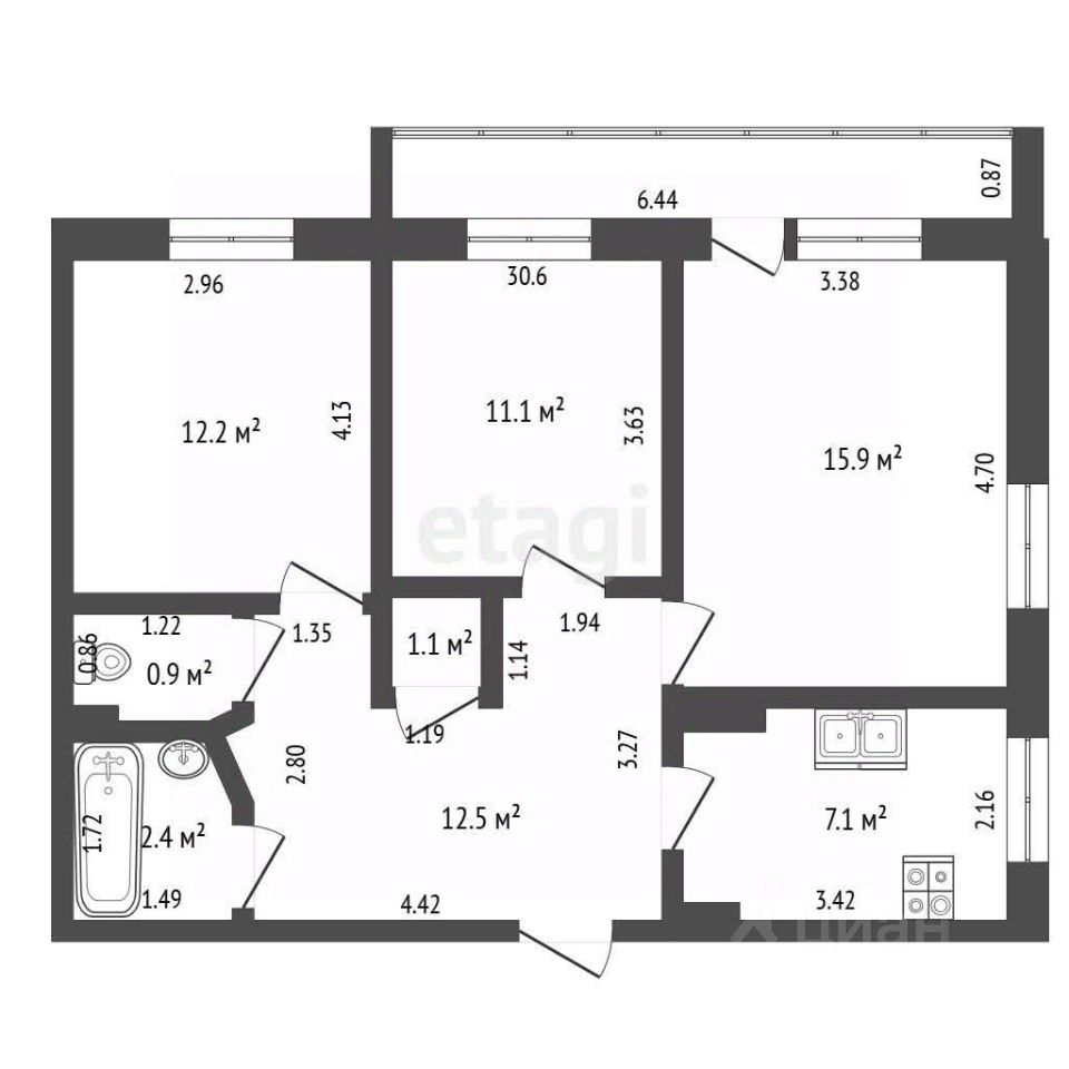 63,2 м²