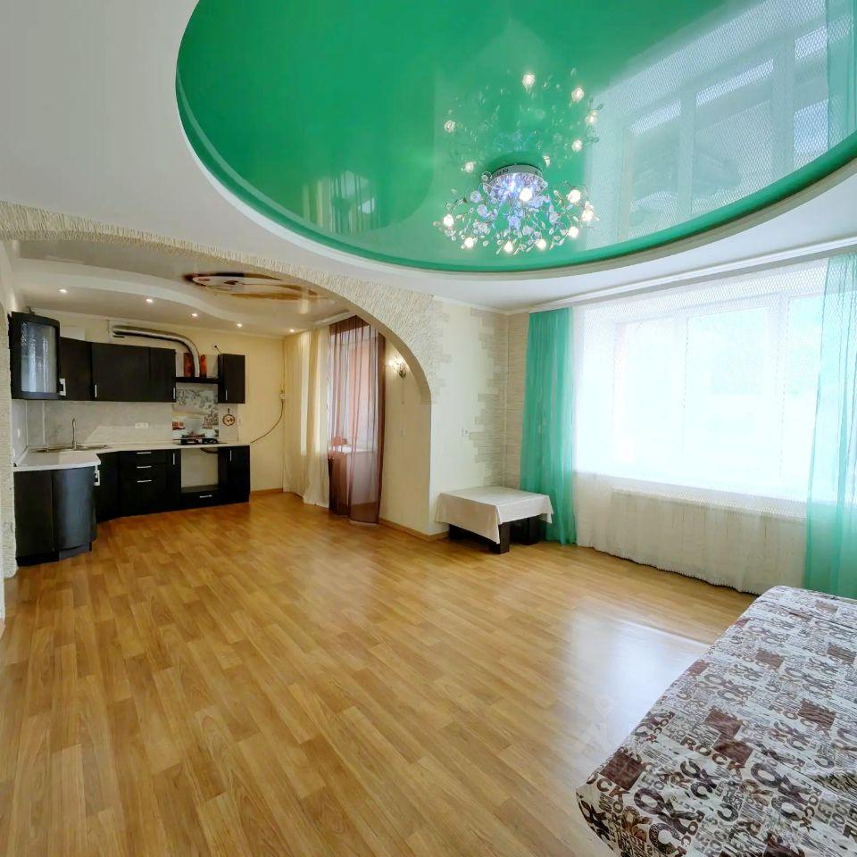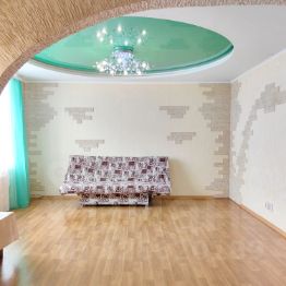 - потолки: в комнатах, кухне-гостиной 2-уровневые комбинированные (натяжной + гипсокартон), в коридоре и санузле - натяжные.