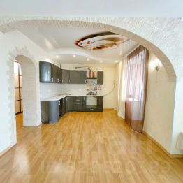 Жилые комнаты изолированные (14,84 м² + 12,33 м²), просторная кухня-гостиная (27,77 м², перепланировка узаконена), раздельный санузел, везде установлены пластиковые окна, застекленная окнами ПВХ лоджия, имеются счетчики на холодное, горячее водоснабжение и электроэнергию.