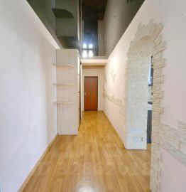 - стены: в комнатах оклеены обоями, в коридоре и кухне-гостиной комбинированная облицовка обои и декоративные вставки из искусственного камня, в санузле облицованы кафельной плиткой;