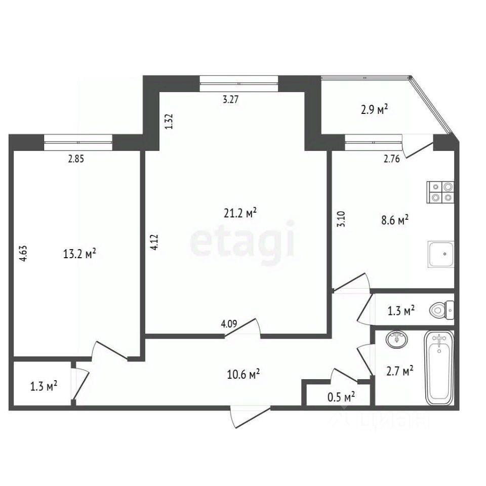 21,2 м²