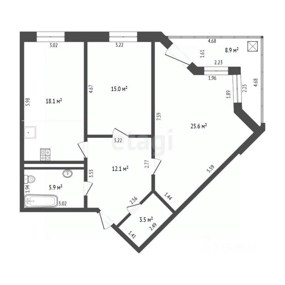 Общая площадь 80,2 м², огромная кухня 18,1 м² — хватит места для семейных ужинов и готовки.