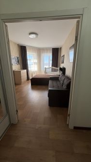 Пространство квартиры грамотно организовано: жилая зона составляет 19 квадратных метров, где можно создать идеальное место отдыха после рабочего дня; кухня занимает 8.5 квадратных метров достаточно места для приготовления любимых блюд и семейных ужинов.