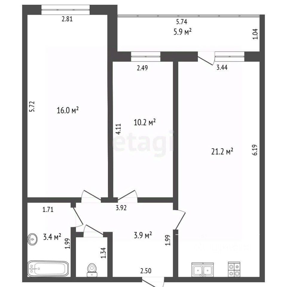 58,6 м²