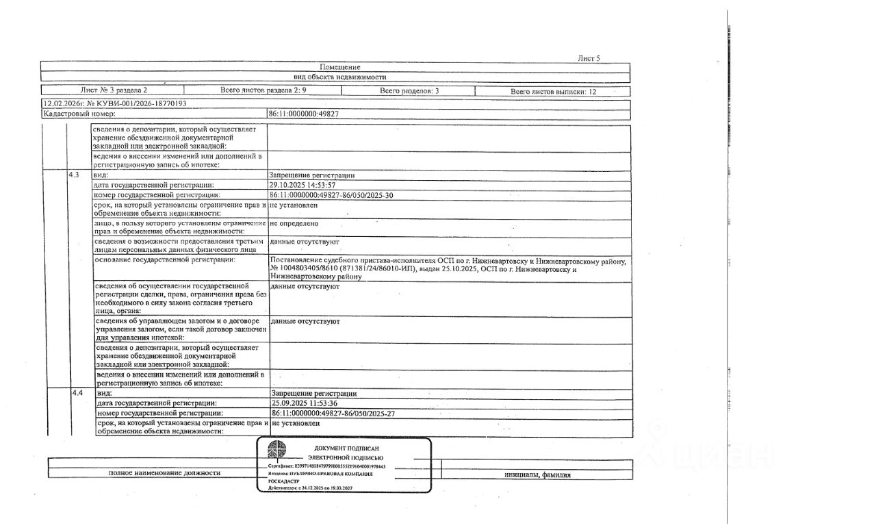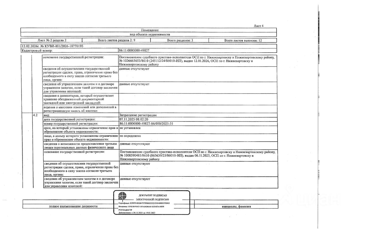 Должник: Васильев А.С., собственник: Васильев А.С., Лактионова А.А. Лот: Жилое помещение (квартира), площадь 58,6 кв.м., кадастровый номер: 86:11:0000000:49827, г. Нижневартовск, ул. Нефтяников, д. 2, кв. 67 (зарегистрирован 1 взрослый, 1 ребенок, задолженность за кап. ремонт на 05.02.2026 - 57 т.р.), н/ц: 2957659,20 р., з-к: 2957 р., код: 0014, рег. 26-170;