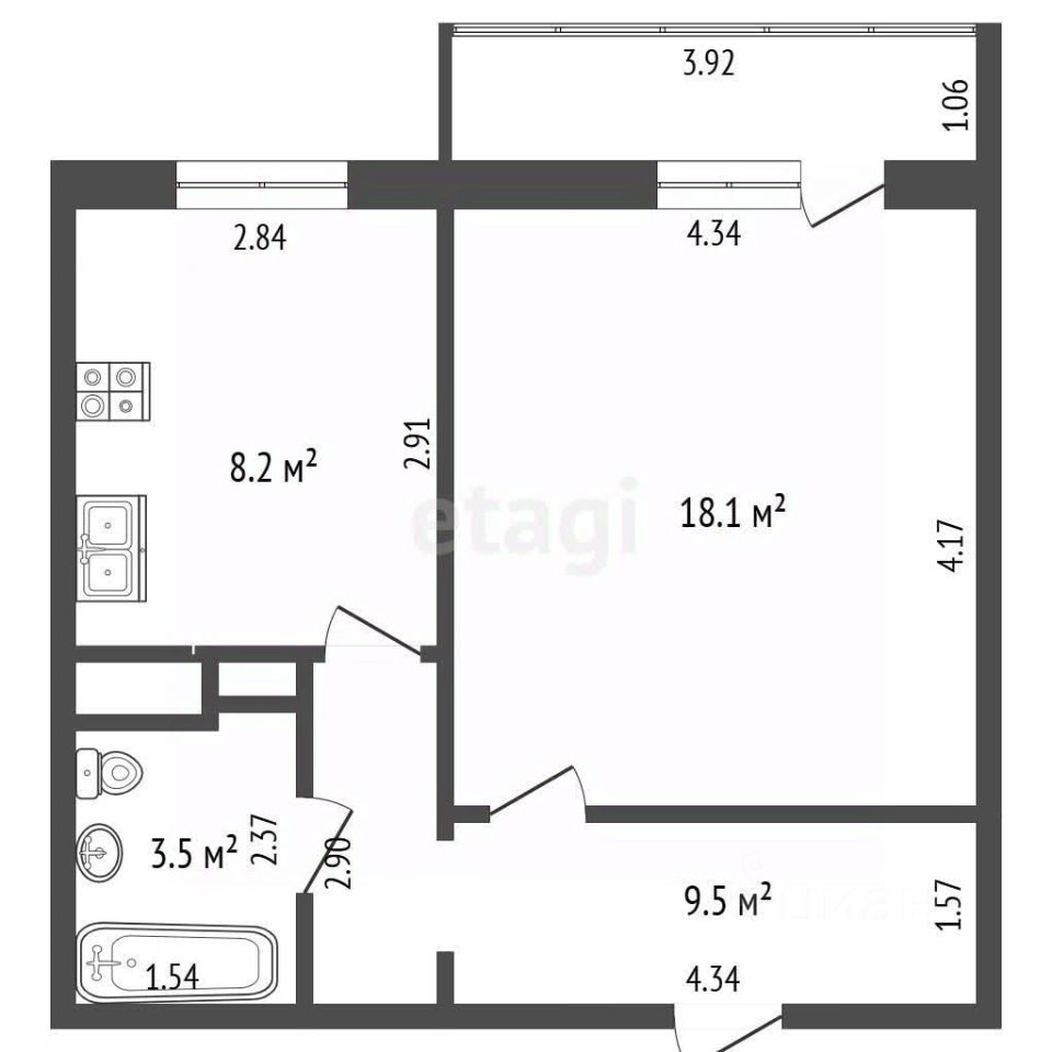 39,3 м²