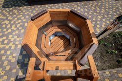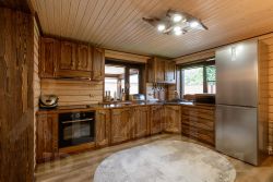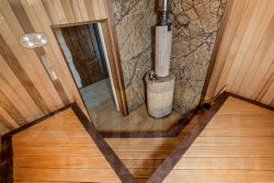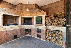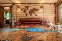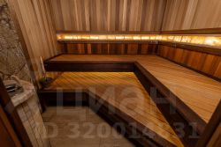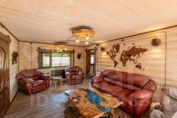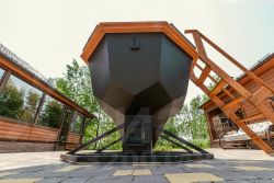 Баня — с зоной отдыха, панорамным остеклением, мягкой мебелью, душем, канадским кедром в парной и печью Ферингера. Есть чан на 6 человек, крытая мангальная зона с тандыром, казаном и коптильней.