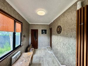 -веранда, где можно раздеться, разуться, одеть тёплые тапочки и проходить в сам дом. Одна из дверей, расположенных на веранде ведет в подсобное помещение -котельную, где расположен эл. котёл на 380v с регулируемой мощностью до 15кв., с функцией wifi и возможностью удалённого управления, наполняющий дом теплом (используется и нагрева водяного пола в доме). Так же, в этом помещении располагаются ёмкости для очистки и хранения воды.