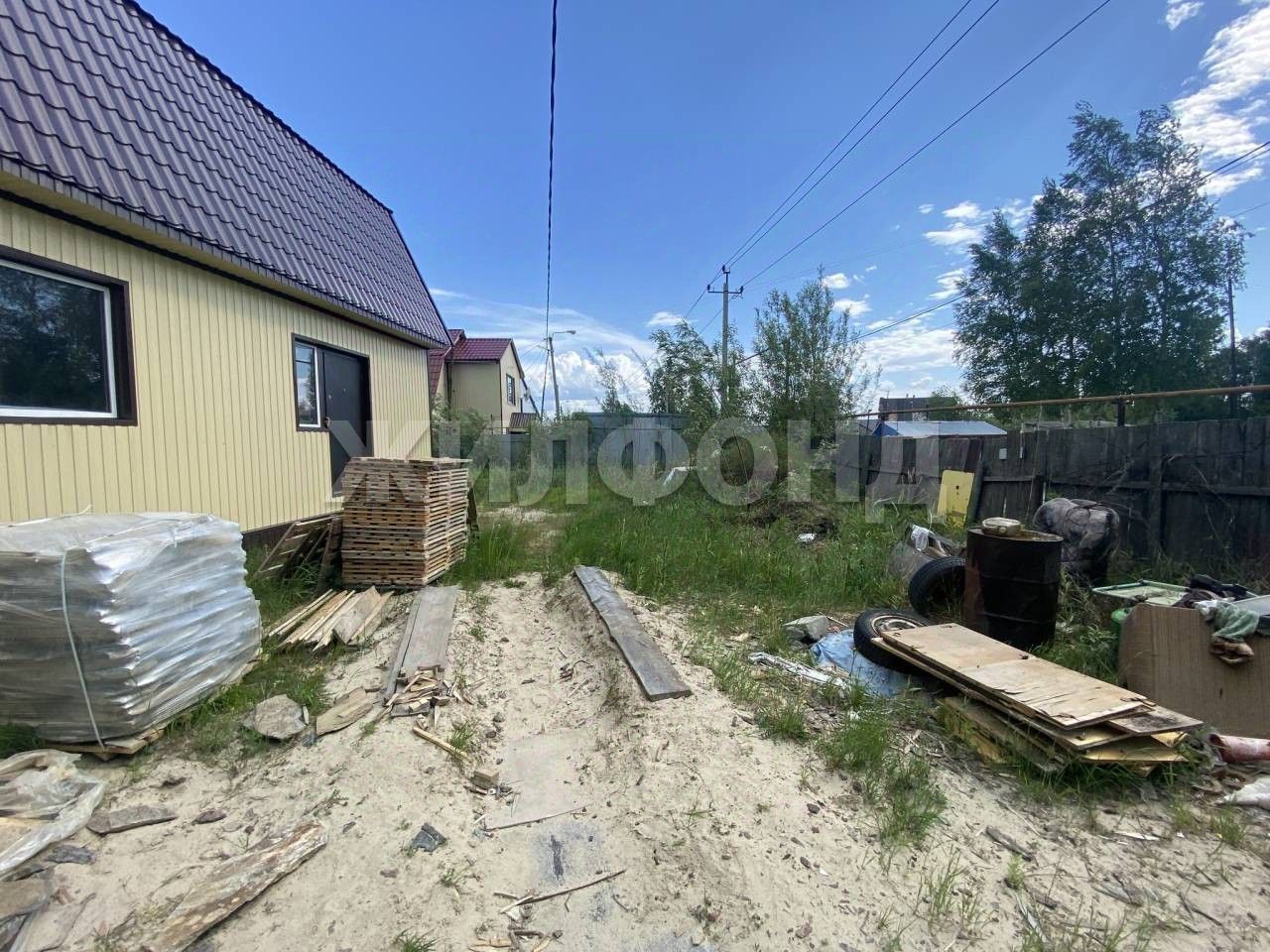 Второй дом - новый 2-х этажный бревенчатый дом (обшит сайдингом) без внутренней отделки! Площадь дома 120 кв.м, к дому проведена септическая канализационная система.