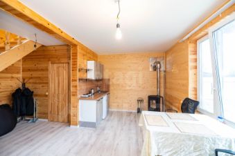 Внутри дом обшит вагонкой. В гостиной имеется натяжной потолок, на полу постелен ламинат. Отопление - электрическое.