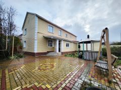 Дом 2-этажный,прочный монолитный фундамент, первый этаж кирпичный, второй из бруса, имеется гараж на 2 авто и во дворе есть еще одно машино место.