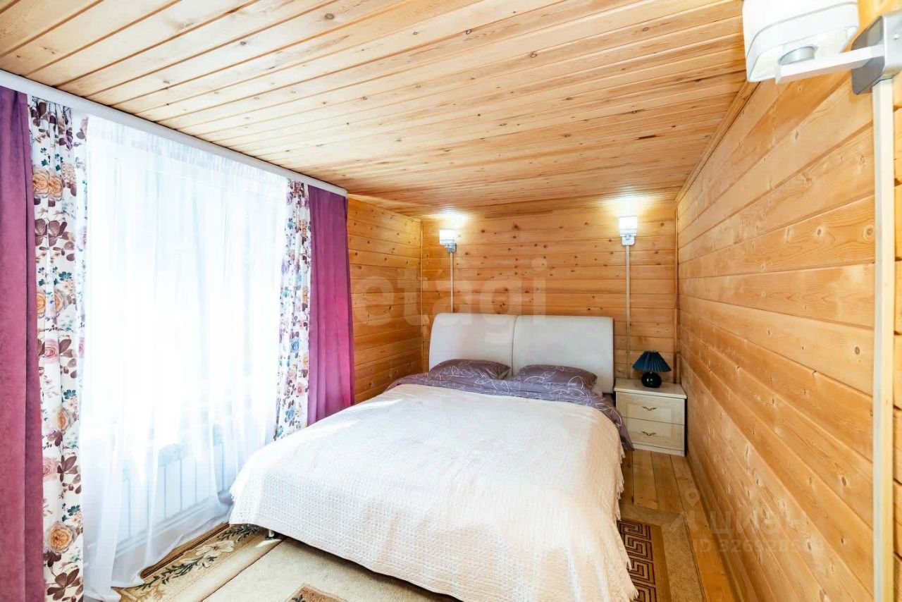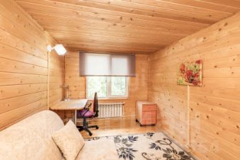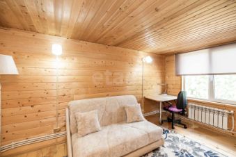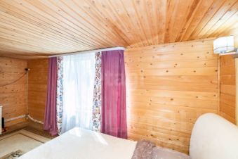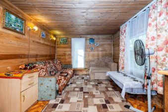 Дом выполнен из бревна, пристройка каркас, перекрытие деревянное, обшит сайдингом. 2 этажа. на 1 этаже: веранда, кухня, большая гостиная, комфортная лестница. 2 этаж: две спальни, сан узел.