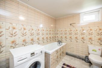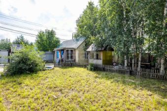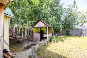 На территории: свой березовый лес, действующая баня, зона барбекю, дровяник, сарай, вольер для собаки, уличный туалет, газон. Дорожки облагорожены брусчаткой.