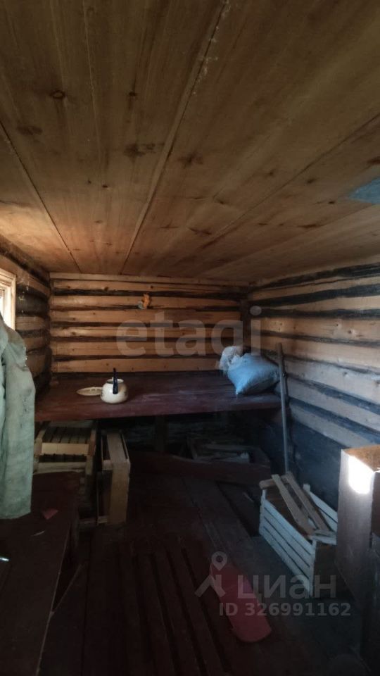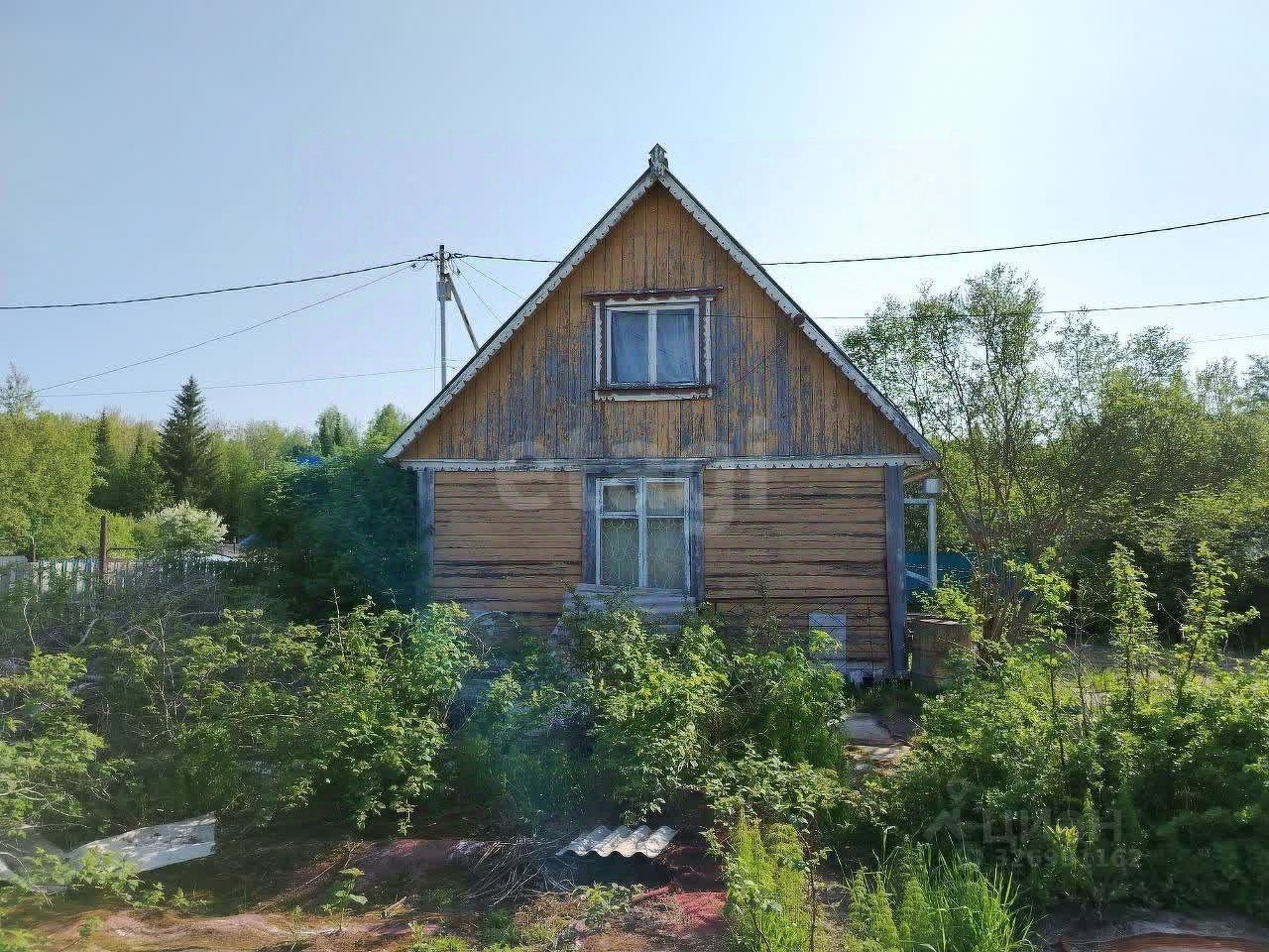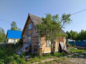 На участке построен небольшой садовый домик из профилированного бруса в два этажа. Кроме того, имеются хозпостройки и небольшая банька.