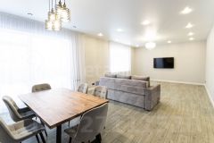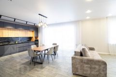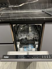 - Установлена необходимая мебель и техника: кухонный гарнитур, холодильник, варочная панель, посудомоечная машина, диван, огромный телевизор.