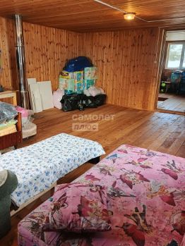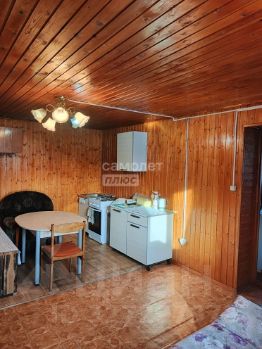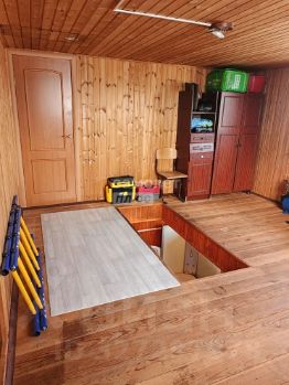 Двухэтажный дом (1й этаж — пеноблоки, 2й — брус) на ленточном фундаменте. Полностью утеплён, снаружи обшит металлосайдингом, внутри — деревянной вагонкой. Пригоден для проживания зимой и летом. Первый этаж - кухня/гостиная 19,3 м/кв, спальная комната. Второй этаж - спальная комната.