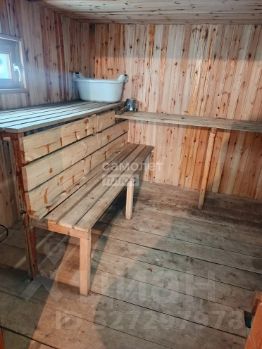 Баня из бруса с предбанником (из блоков). Внутри обшита деревом: совмещённая парилка с моечной, комната для переодевания и комната отдыха. Снаружи обшита металлосайдингом (кроме предбанника).