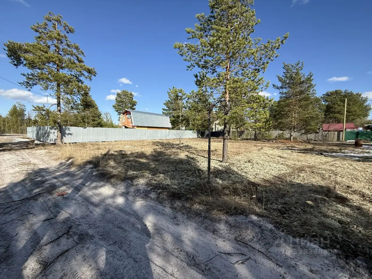 По углам участка сохранены молодые сосны — прекрасная база для ландшафтного дизайна, естественная тень и уединённая атмосфера.
