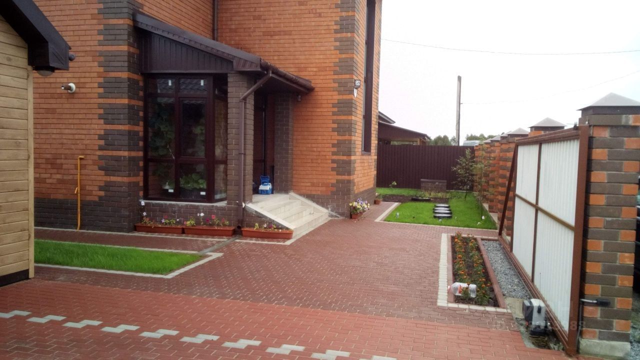 Ухоженная территория с плодовыми насаждениями и организованными грядками. Въезд во двор через автоматические откатные ворота. Дорожки и отмостки вымощены брусчаткой.