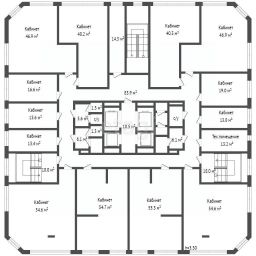 Офисное помещение расположено на втором этаже многоэтажного здания в деловой части города. Объект идеально подходит для размещения офиса компании среднего размера или нескольких небольших организаций.